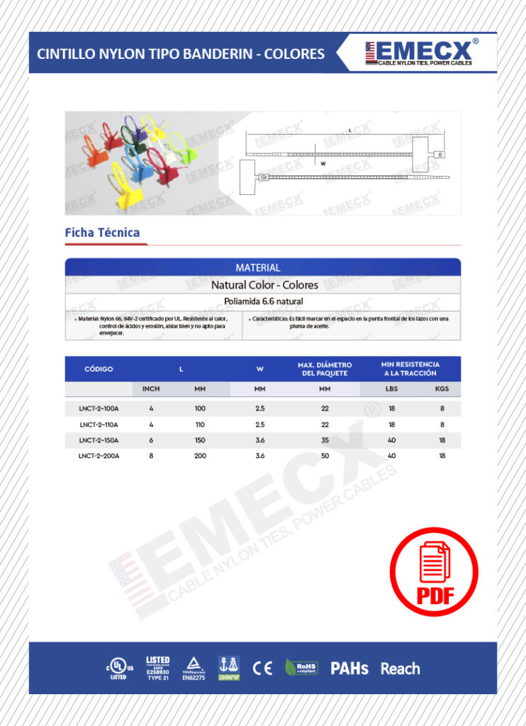 Ficha Técnica Cintillo Nylon (blanco-negro-colores) Ficha Técnica Cintillo Metalico Ficha Técnica Cintillo Nylon tipo bandera Ficha Técnica cintillo nylon tipo banderin-colores