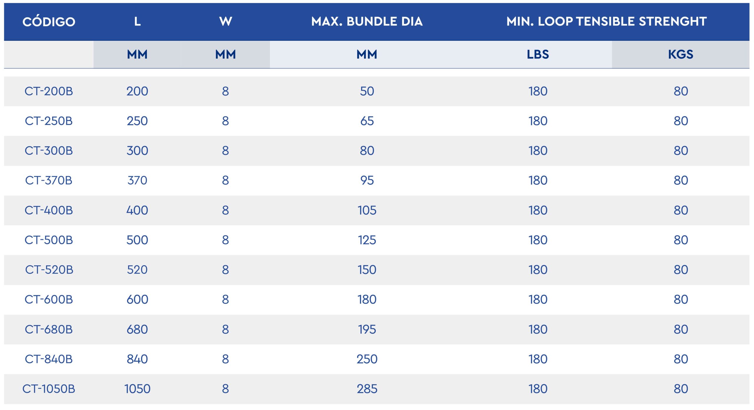 Cintillo Metálico: Para usos generales o entornos corrosivos. Material: Acero Inoxidable 304 – 316 Color: SS304