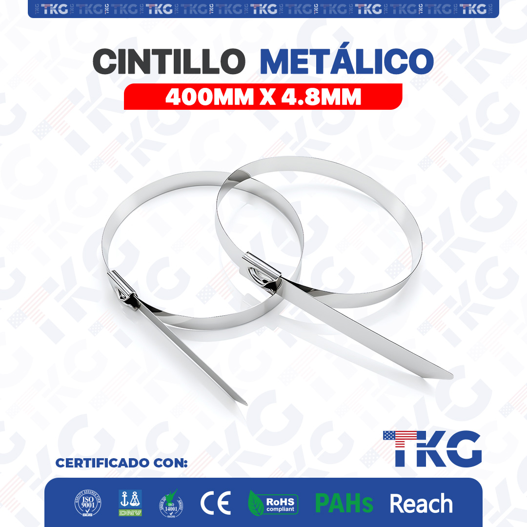 Cintillo Metálico: Para usos generales o entornos corrosivos. Material: Acero Inoxidable 304 – 316 Color: SS304