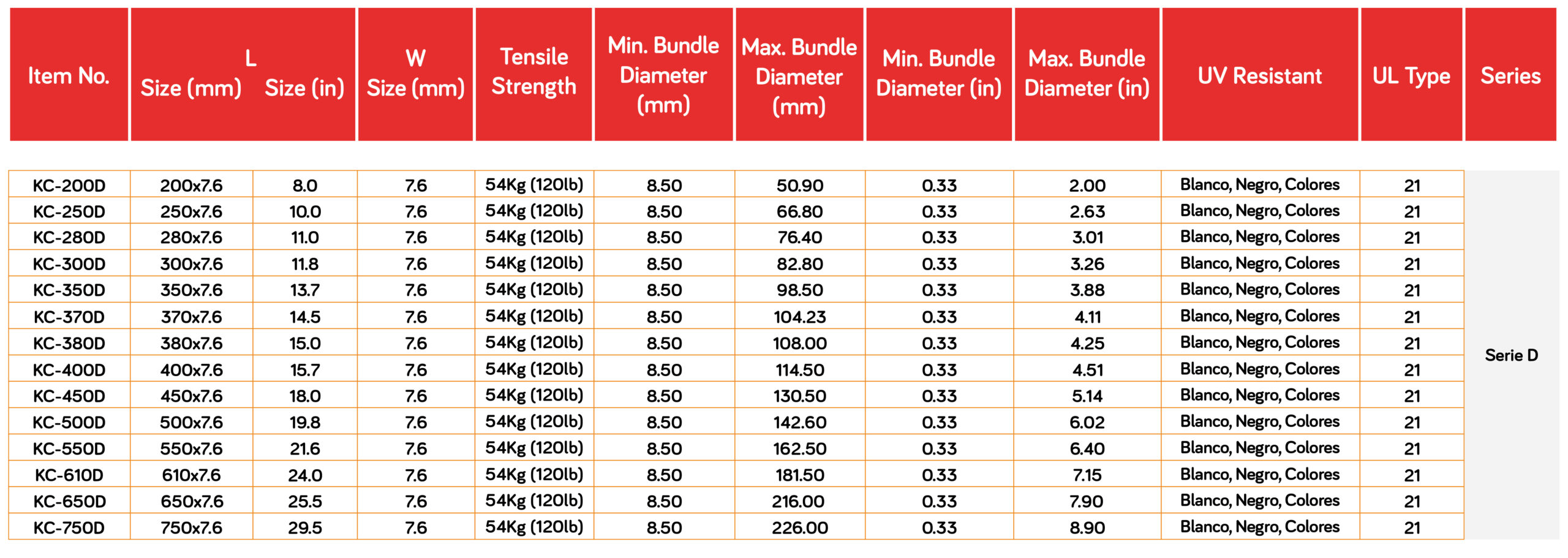• Nylon Ties PA66 aprobado por UL